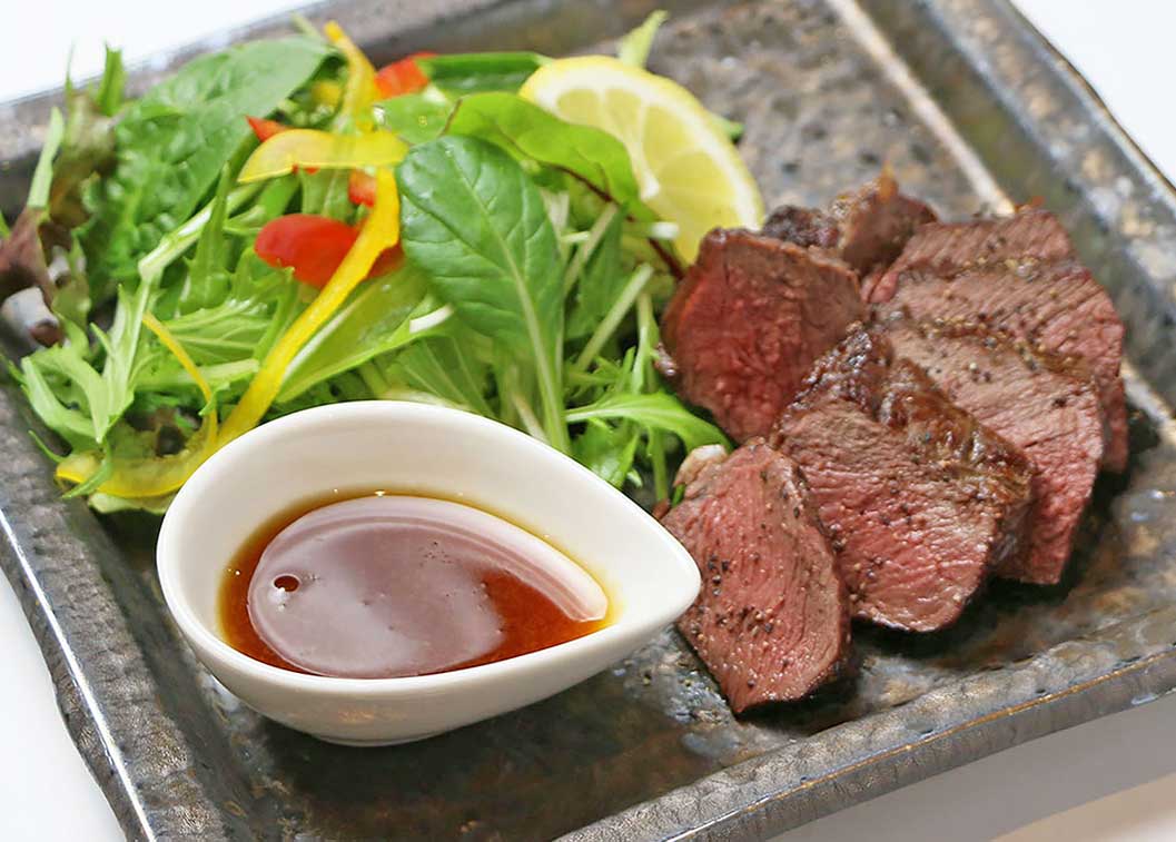 当店では、地元、函館市内にある北海道エゾシカ処理認証施設で加工処理した、安心・安全・高品質なエゾシカジビエ「函鹿」を仕入れ、初めての方にもエゾシカ肉好きにもお奨めの美味しいジビエ料理をご提供しております。